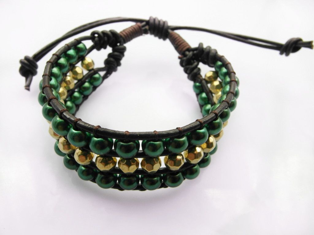 Wholesale Beaded, Strands - Buy Pure Handmade 3 Row Leather Strand Wrap Bracelets Glass Bead Bracelets Unisex Fashion Jewelry, $3.46 | DHgate